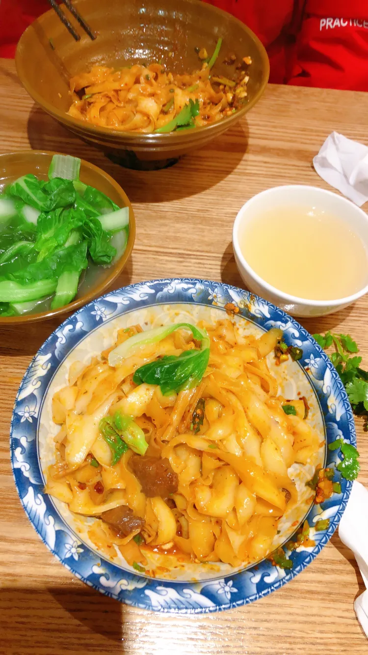红汤豌杂刀削面