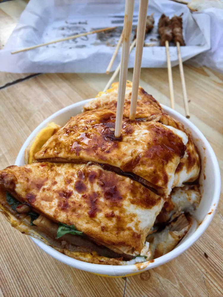双蛋麻辣牛肉酱煎饼