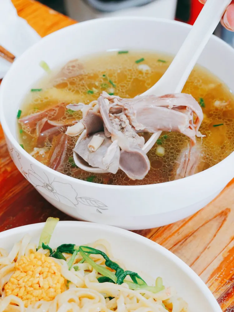 鸡杂汤配干拌面