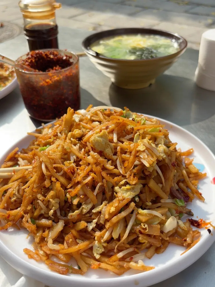 鸡蛋肉丝炒饼